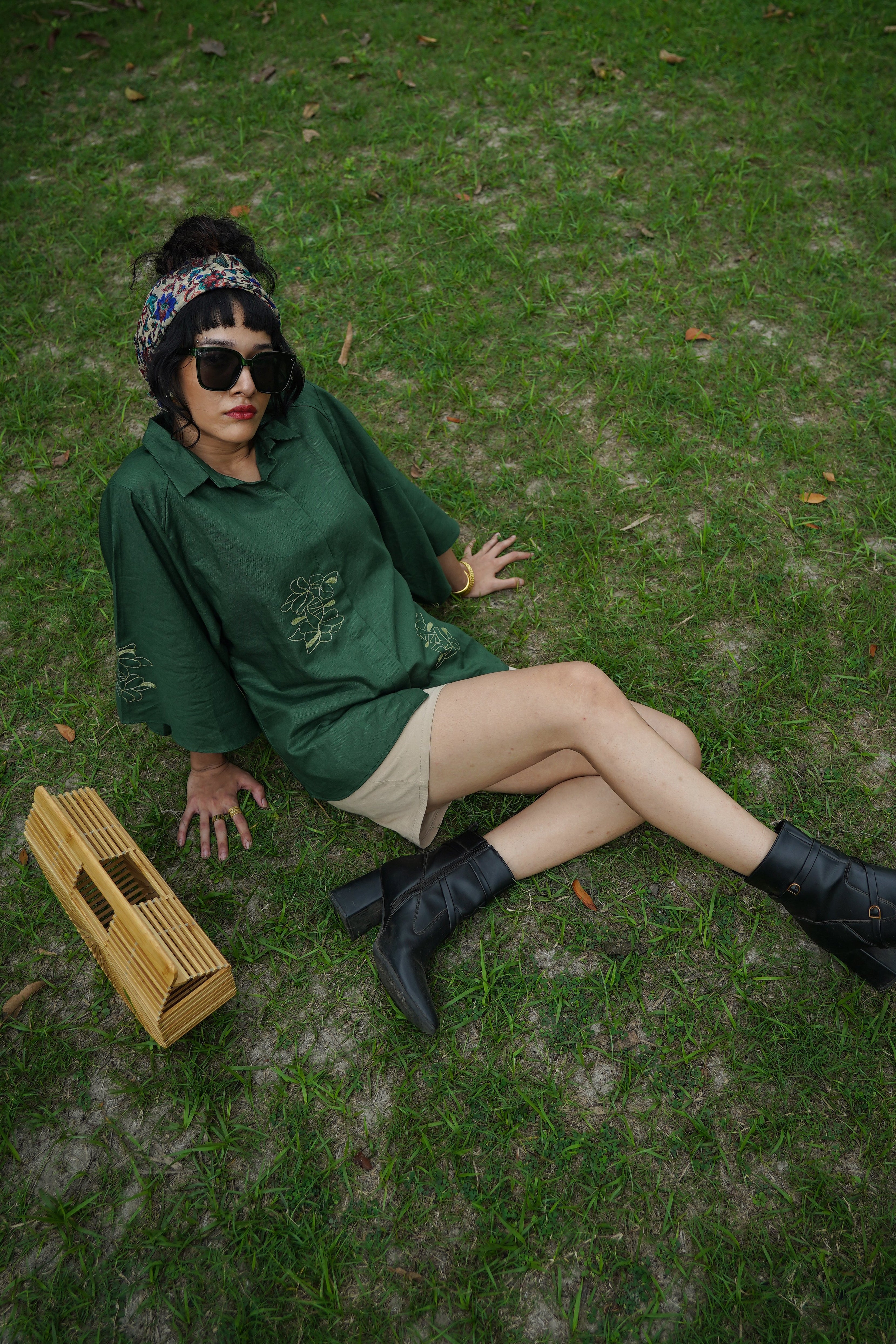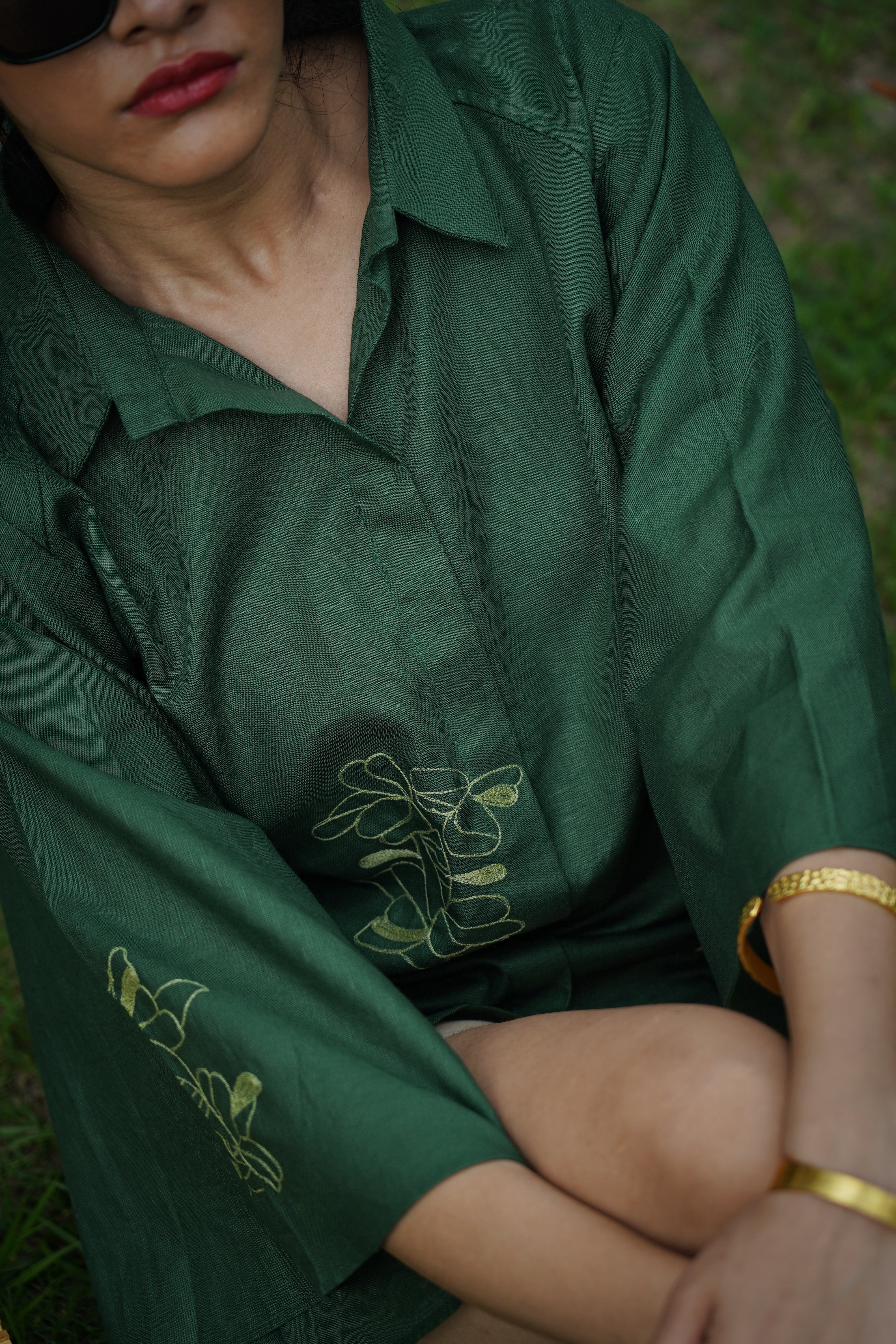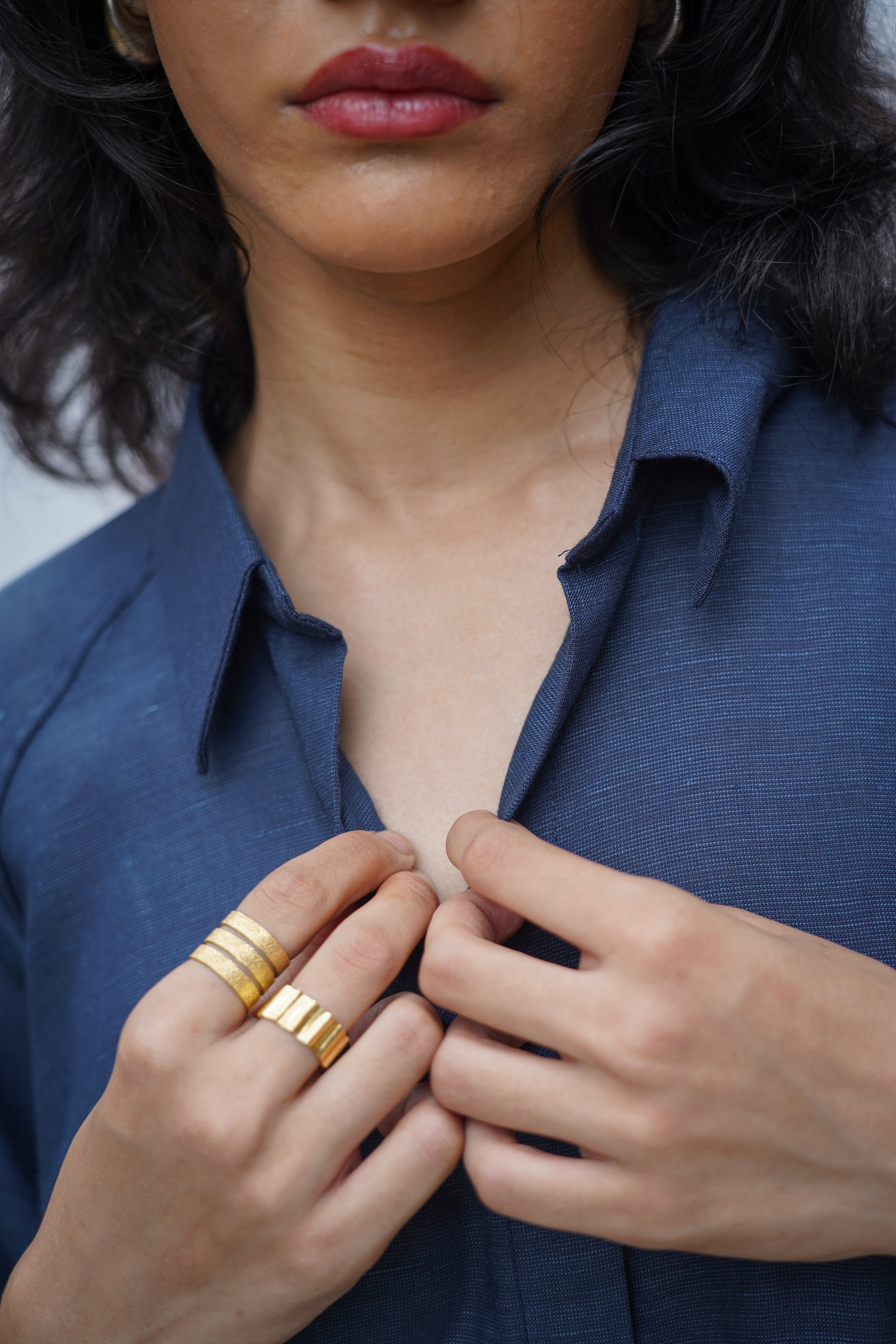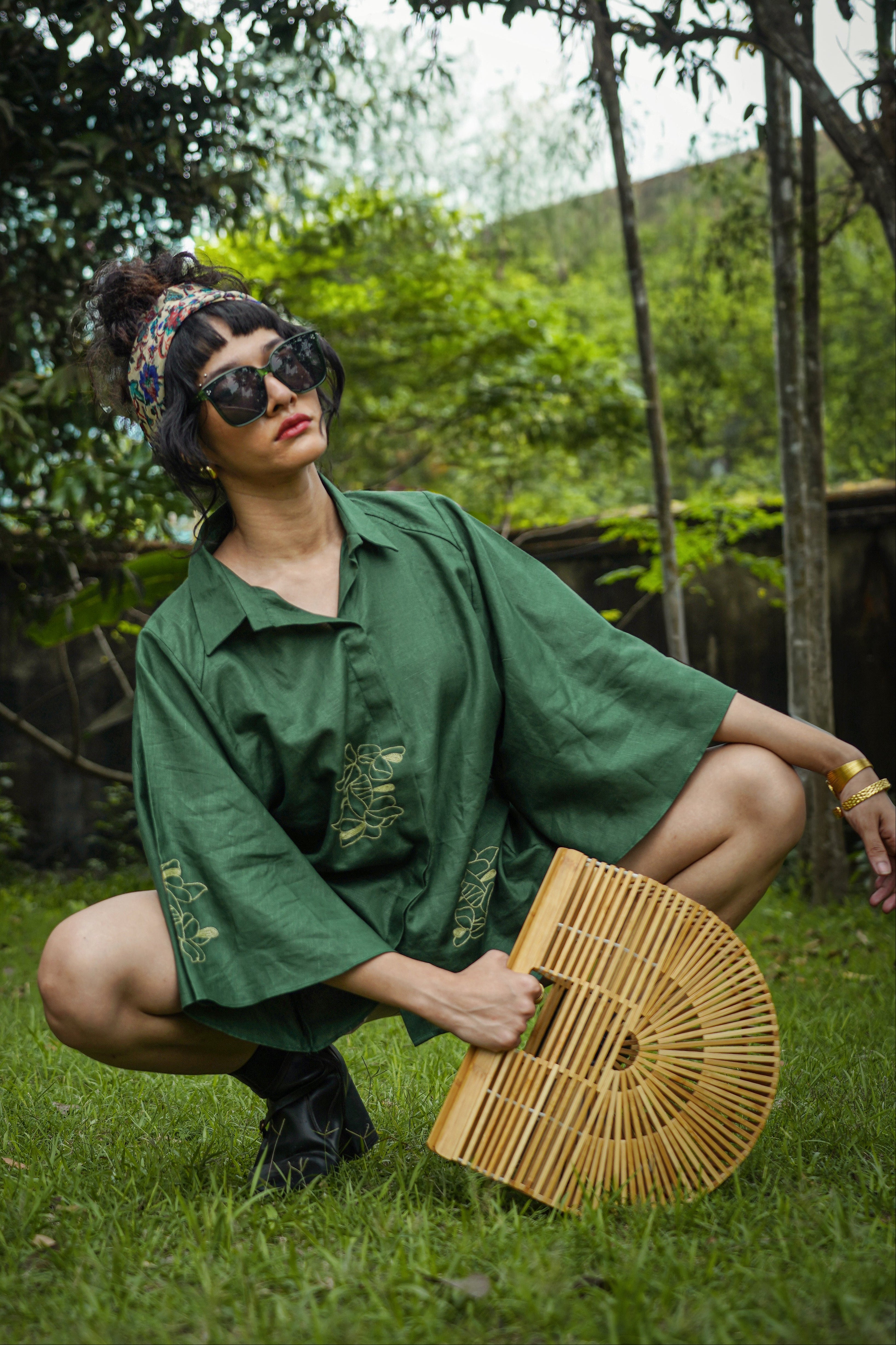 Drift Shirt features a relaxed anti-fit silhouette with dramatic cape-style flutter sleeves and delicate floral hand embroidery placed along the front and sleeve panels. Designed with a soft shirt collar and clean front placket, it blends structure with fluid movement, making it perfect for both elevated daywear and relaxed evenings. Crafted from our signature Hemp & Organic Cotton blend, the fabric is naturally antibacterial and odour resistant, UV resistant, and thermo-regulating, keeping you comfortable across all seasons. It softens with every wash and is mill-dyed for lasting colour fastness, ensuring rich indigo tones that stay beautiful over time. A graceful statement rooted in comfort and conscious design.