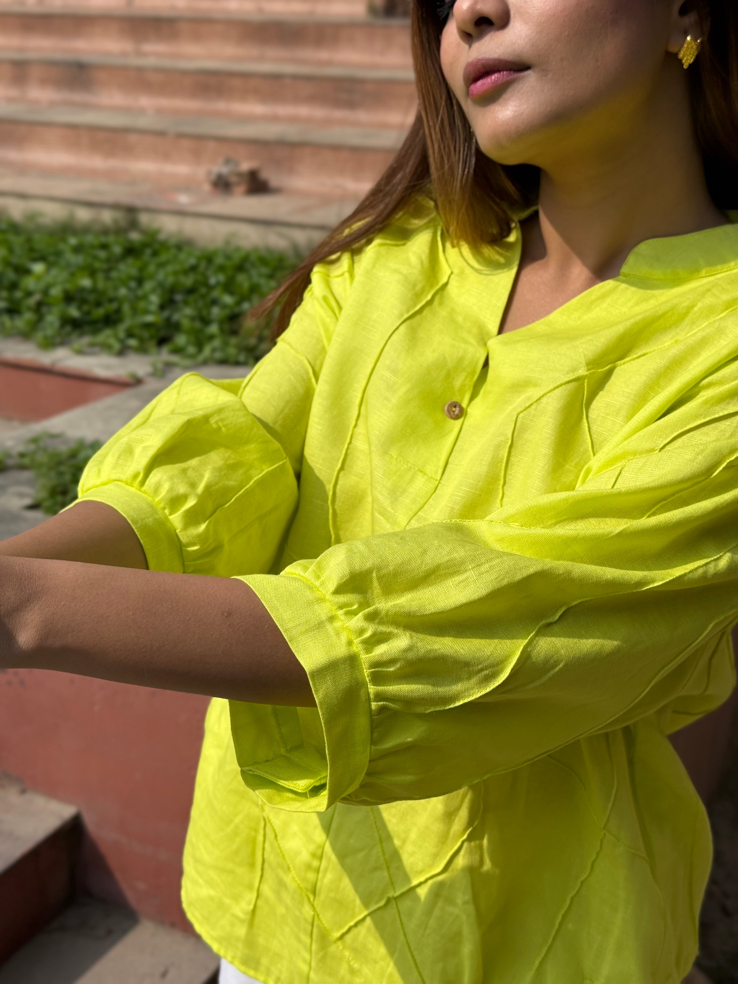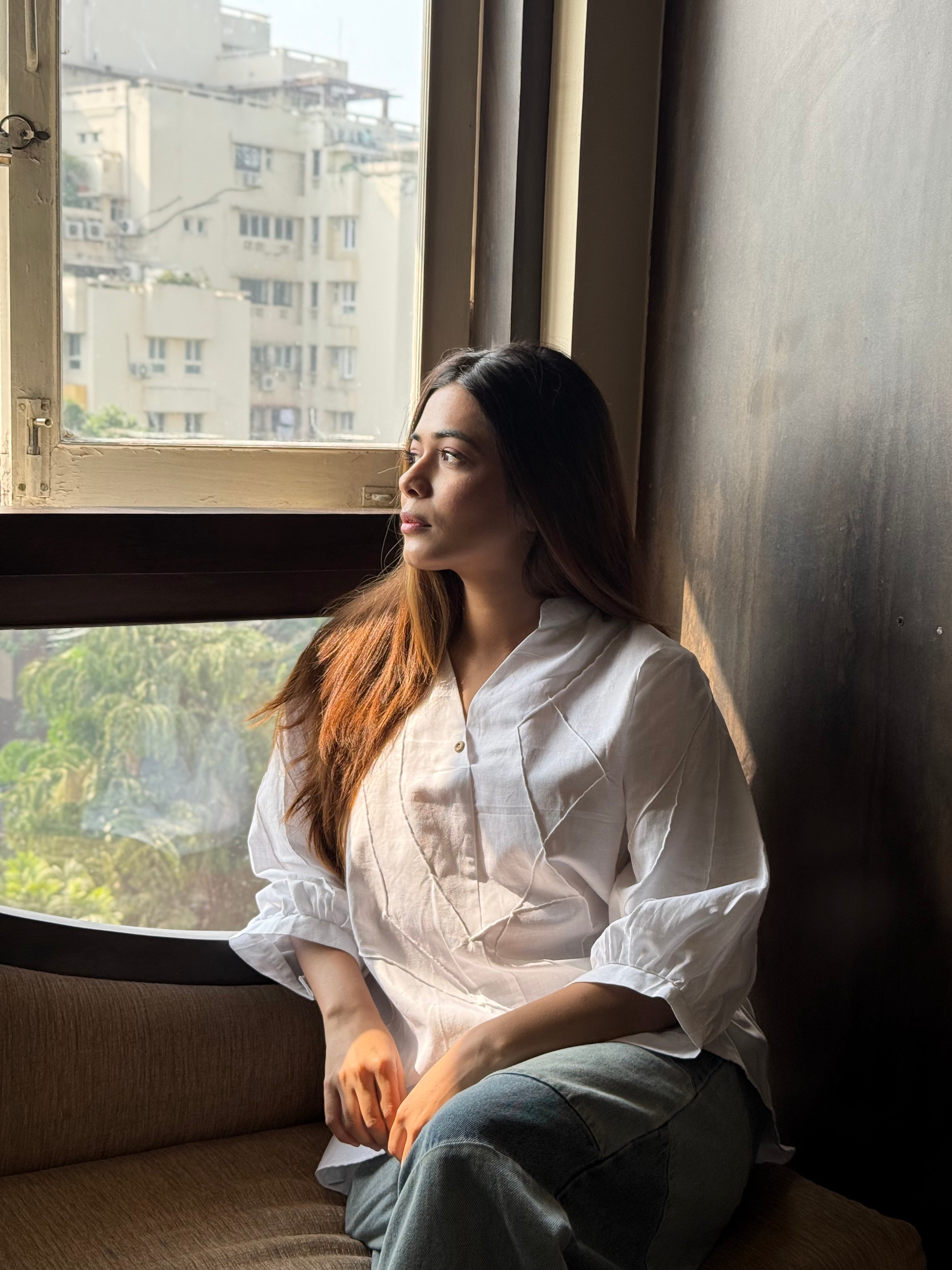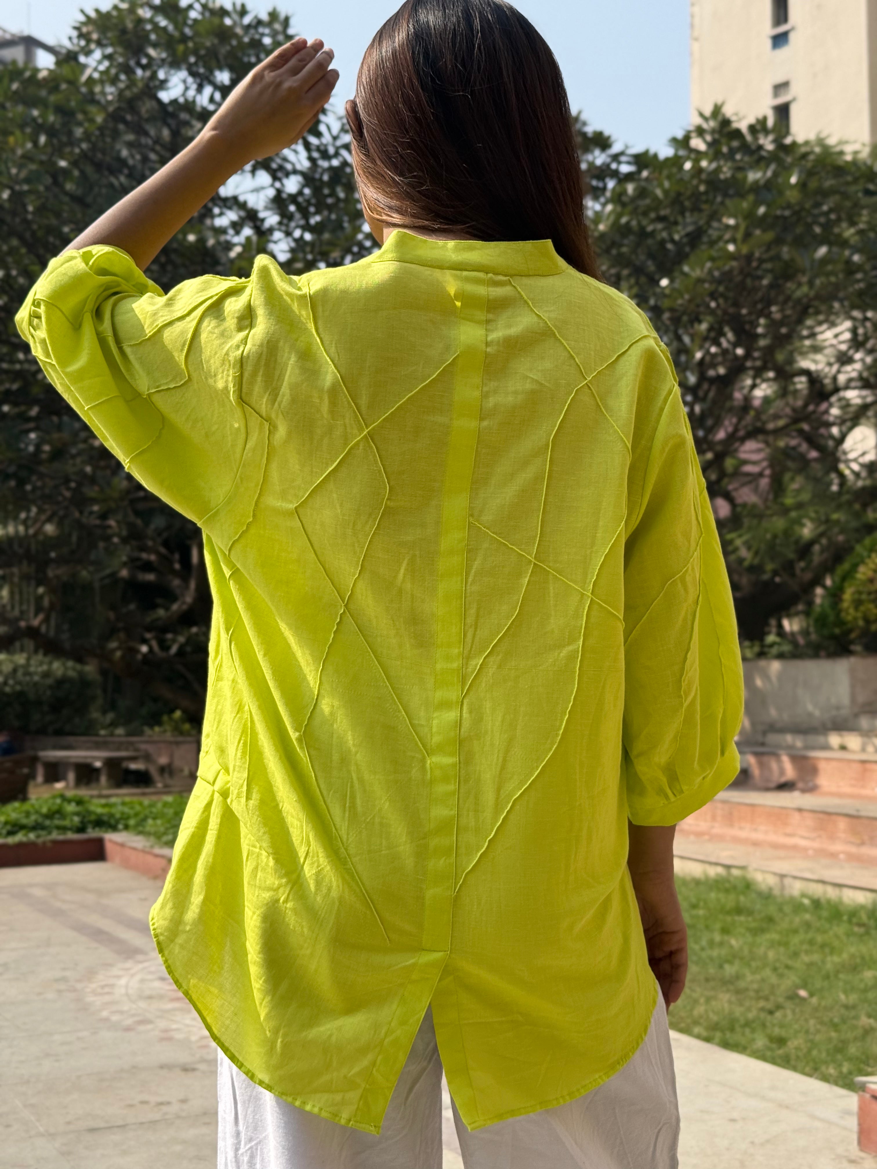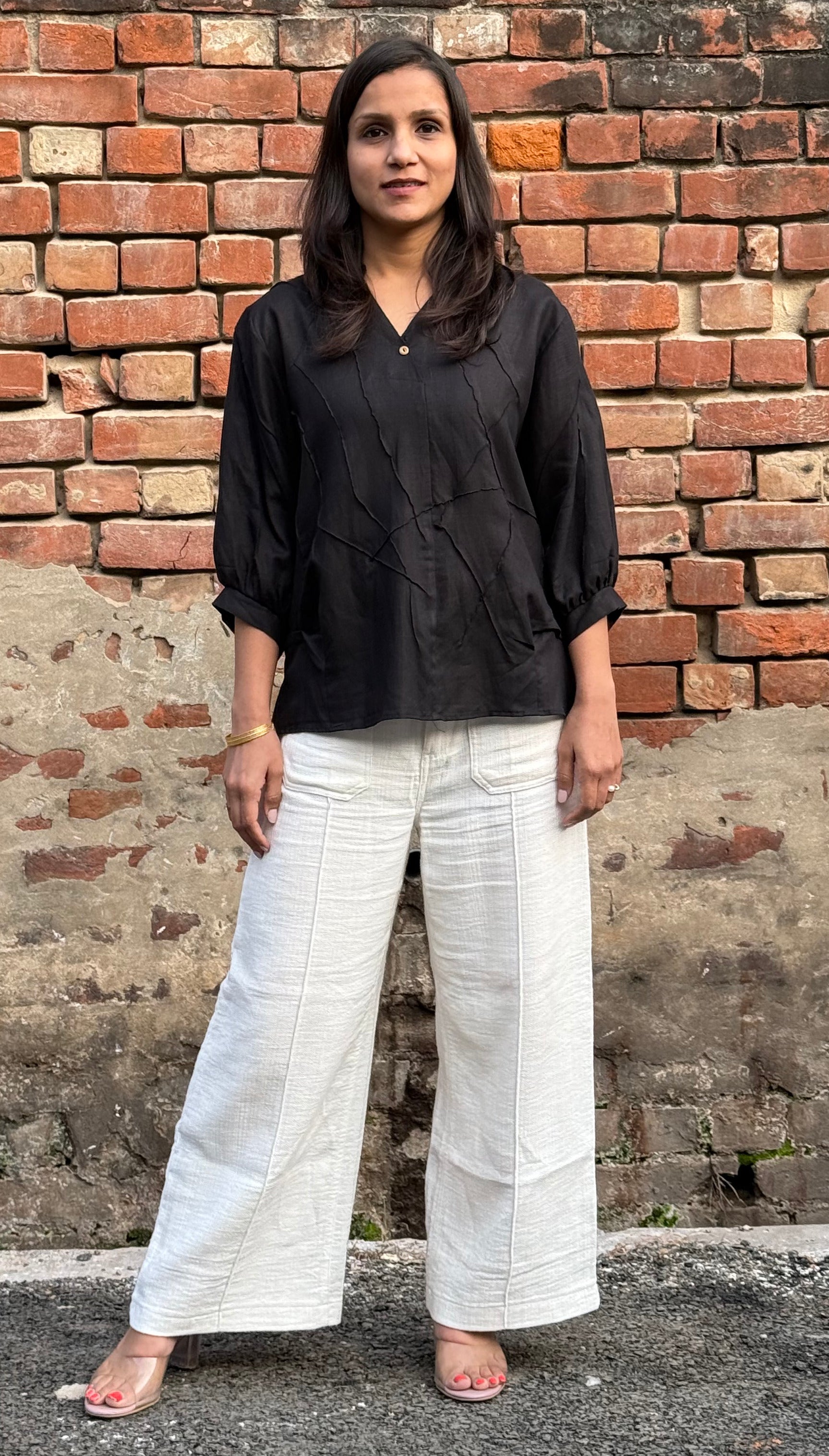 Designed for everyday ease with a design-forward touch, the Criss-Cross Calm Shirt features an anti-fit silhouette with soft geometric seam detailing that adds subtle structure and visual interest. Crafted in a breathable Hemp & Organic Cotton blend, it comes with a clean mandarin-notch neckline, relaxed 3/4th sleeves, and a slightly curved hem that flatters across body types. Easy to style with denims, trousers, or co-ord bottoms, this shirt transitions seamlessly from workdays to slow weekends, offering comfort, versatility, and conscious elegance in every wear.