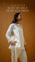 Lavender Purple Regular-Fit Hemp & Tencel Co-ord Set with Hand Embroidery & V-Neck (Aabhaa)